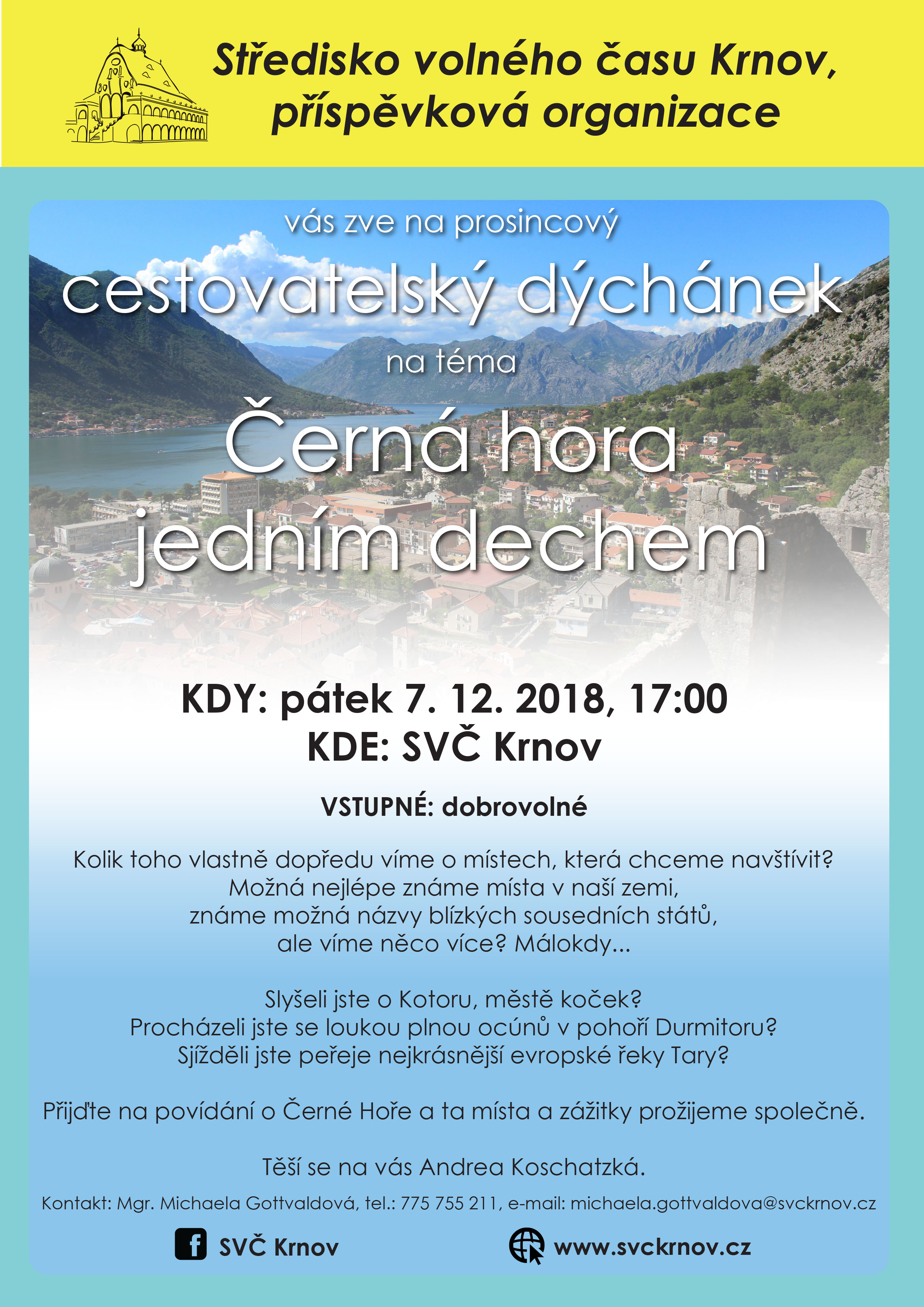 V pátek 7. 12. se společně vydáme do Černé hory. Kam se v této balkánské zemi podívat a co nesmíte zapomenout ochutnat? To vám tentokrát prozradí Andrea Koschatzká.