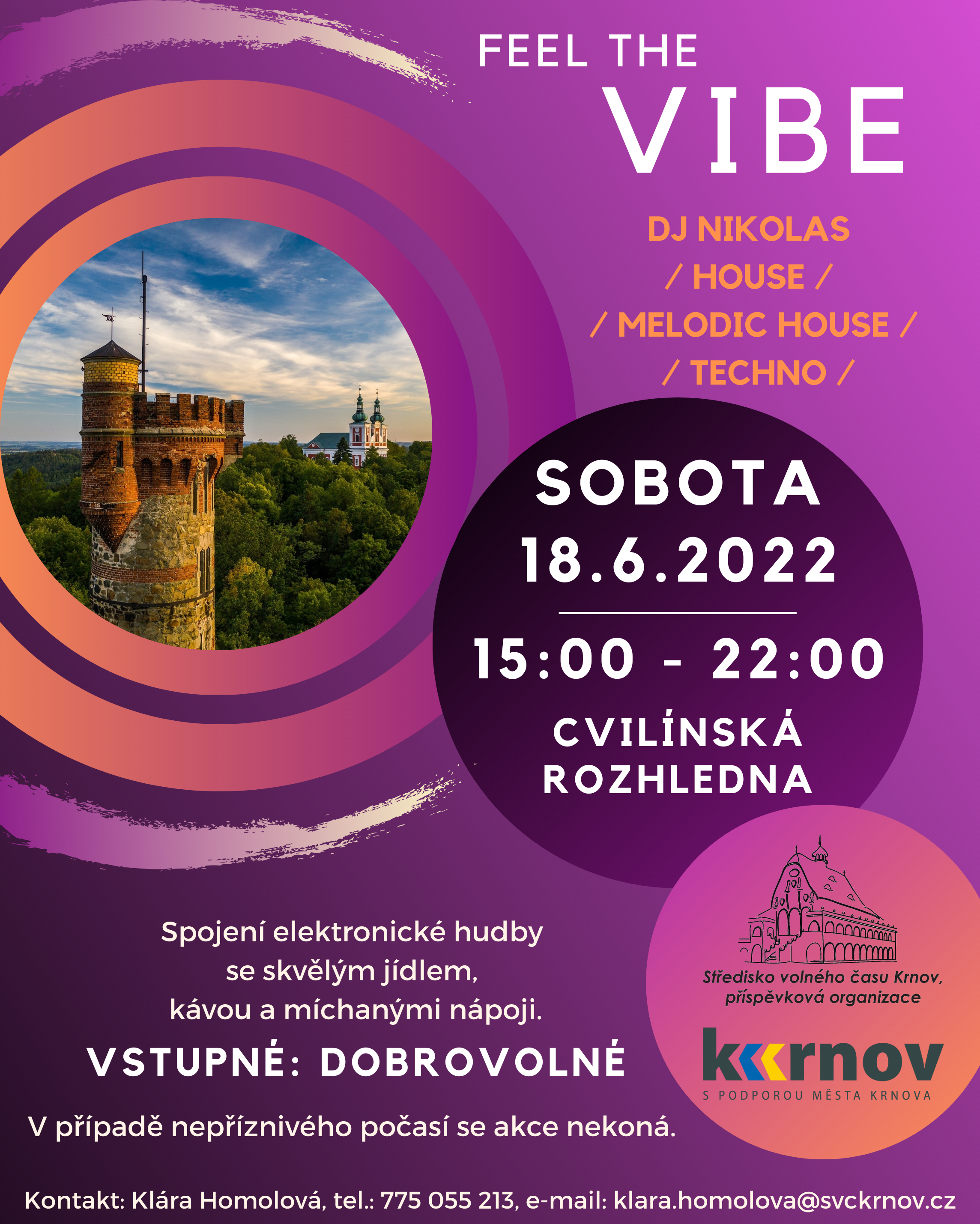 Tentokrát to na cvilínské rozhledně pořádně ožije, a to už 18. června, kdy tento prostor zaplní elektronická hudba, dobré jídlo a pití a samozřejmě skvělý lidé. Hlavní myšlenkou je především hodit se do klidu a nechat se unášet v rytmu hudebních žánrů jako jsou house, melodic house a techno, a to od DJ Nikolase. Vezměte si doma svou oblíbenou deku a přidejte se k nám.