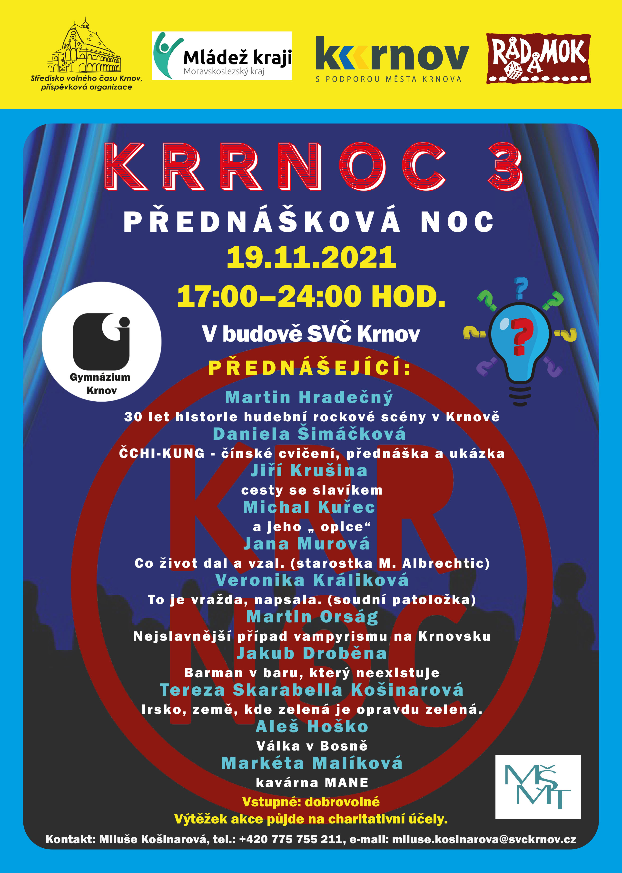 Čeká vás noc plná zajímavých přednášek na nejrůznější témata, která vám představí naši vzácní hosté.