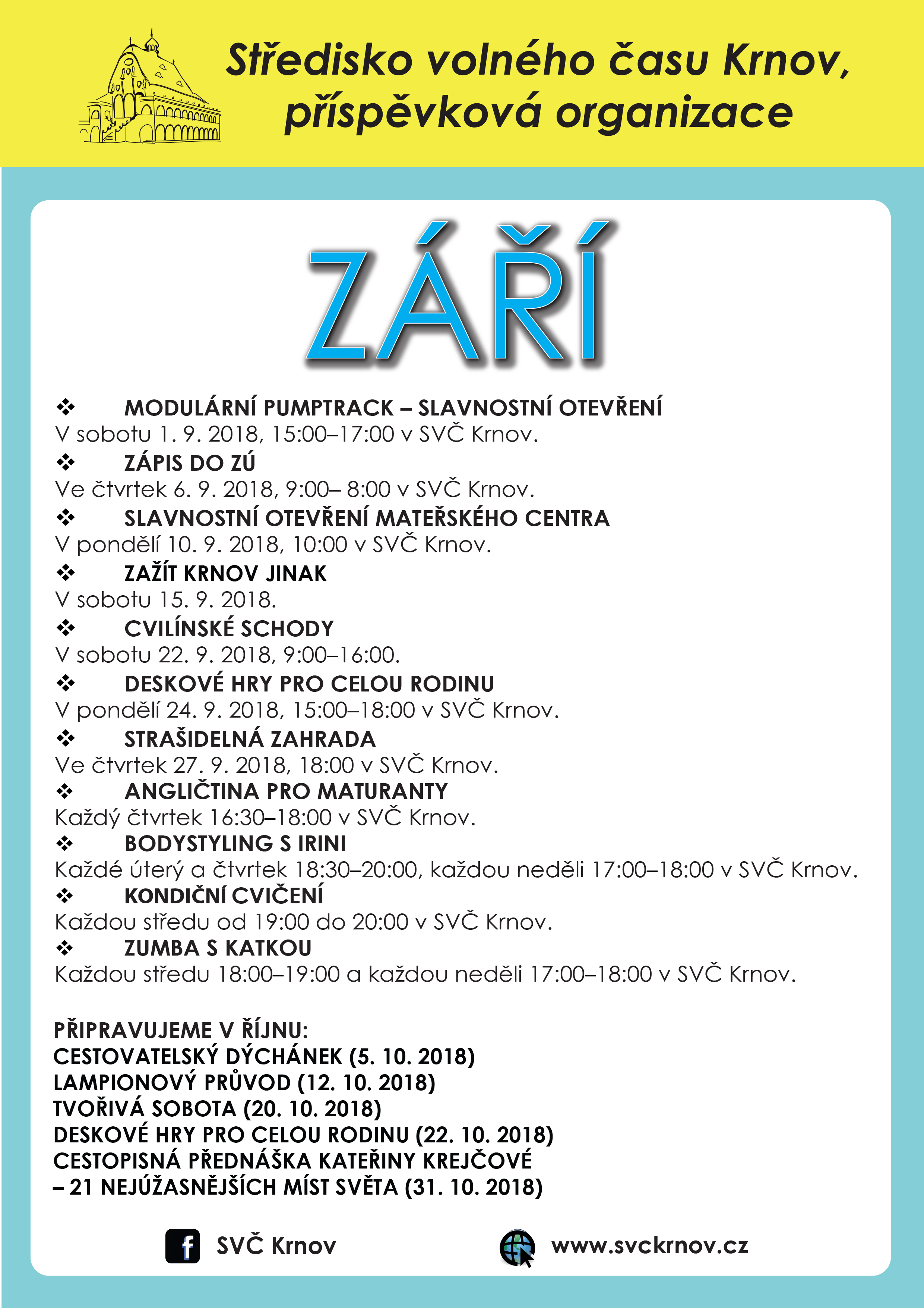 Na měsíc září jsme si připravili pro vás tyto akce: