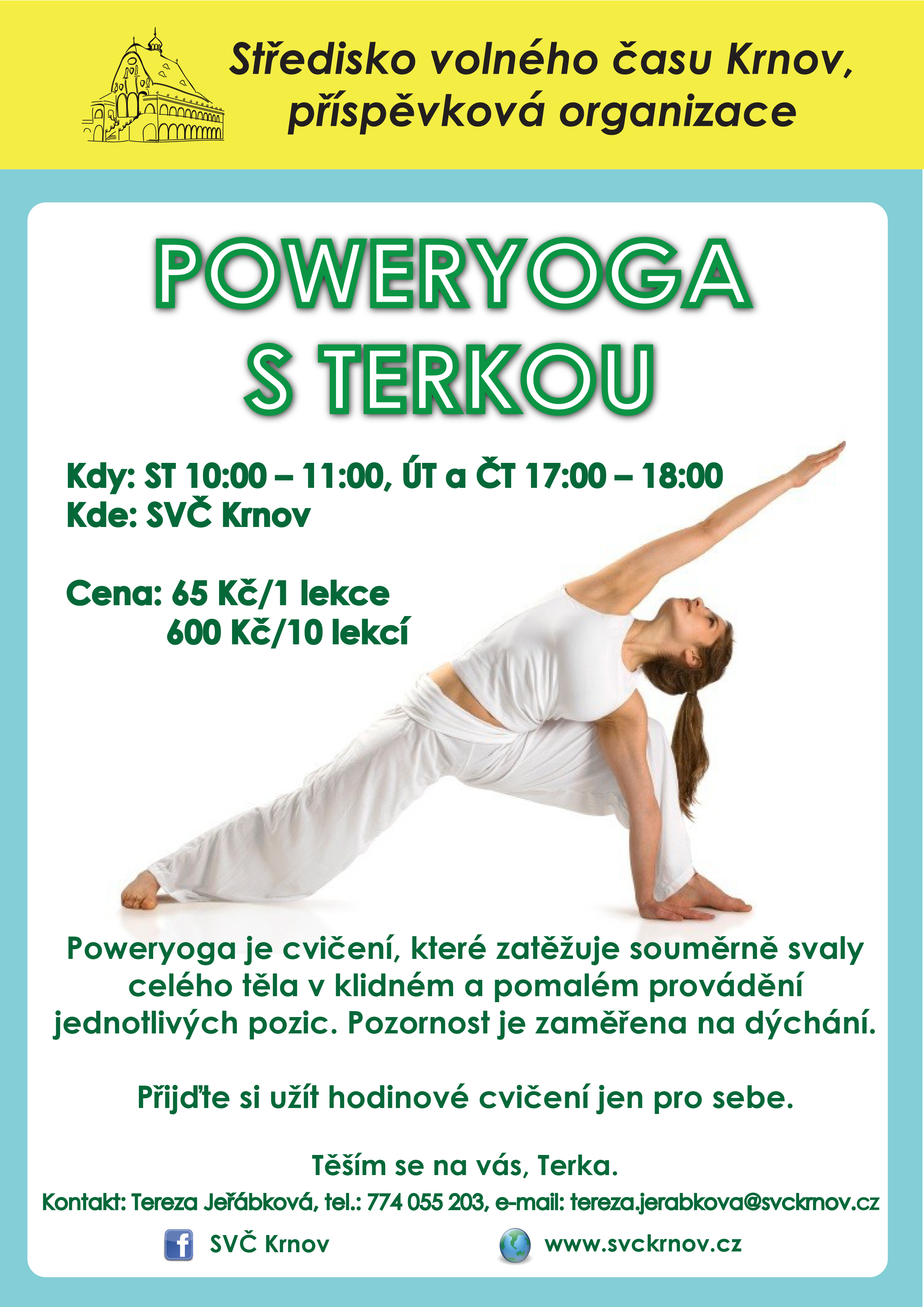 Chcete pro sebe něco udělat? Přijďte si užít hodinové cvičení jen pro sebe. Poweryoga je cvičení, které zatěžuje souměrně svaly celého těla v klidném a pomalém provádění jednotlivých pozic.