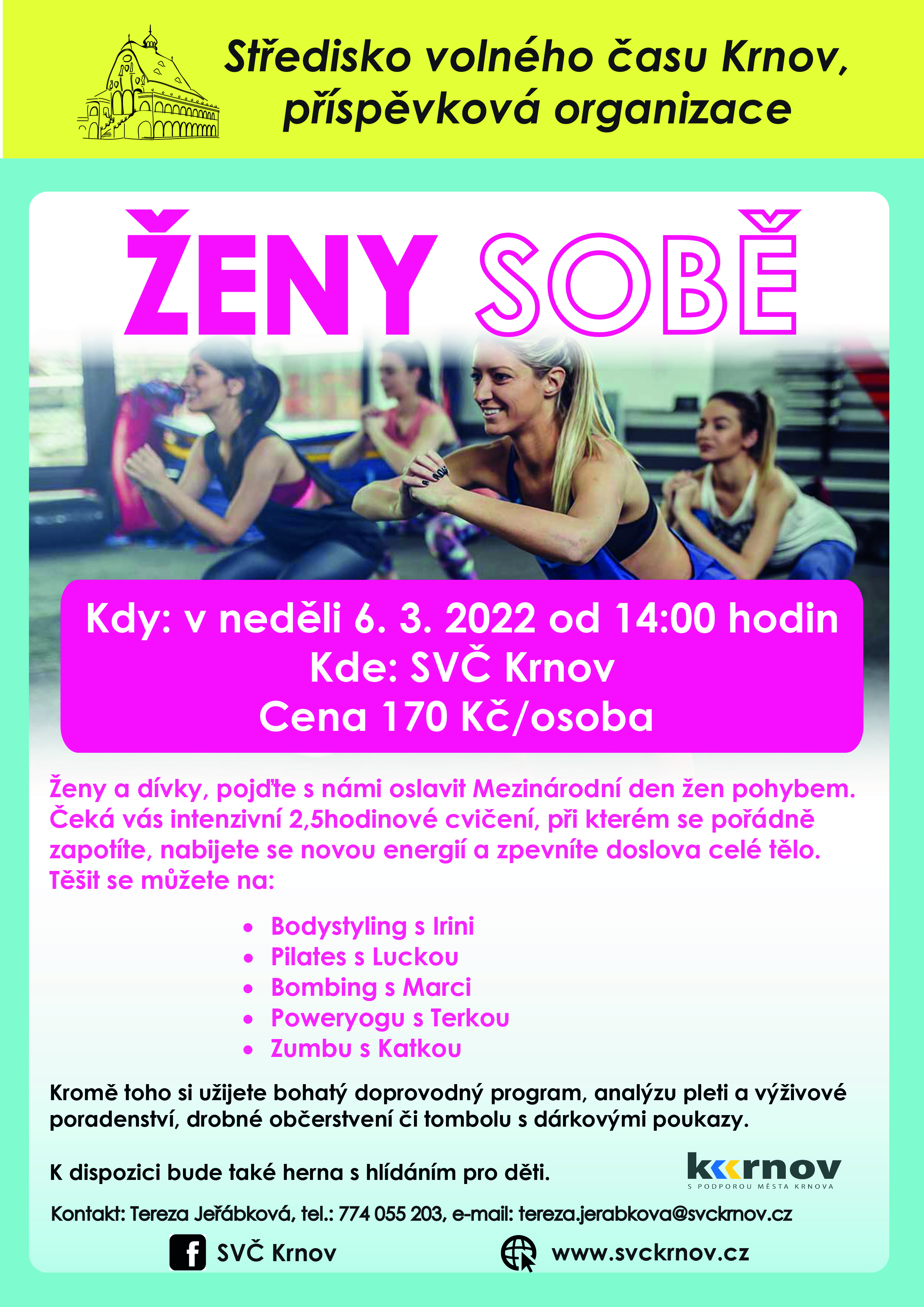 Kromě toho si užijete bohatý doprovodný program, analýzu pleti od Barušky Ondrášíkové a výživové poradenství od Jitky Svačinkové, drobné občerstvení či tombolu s dárkovými poukazy.