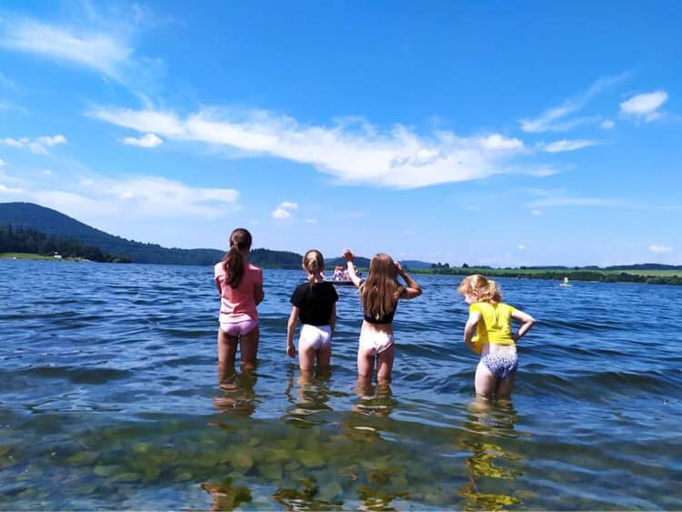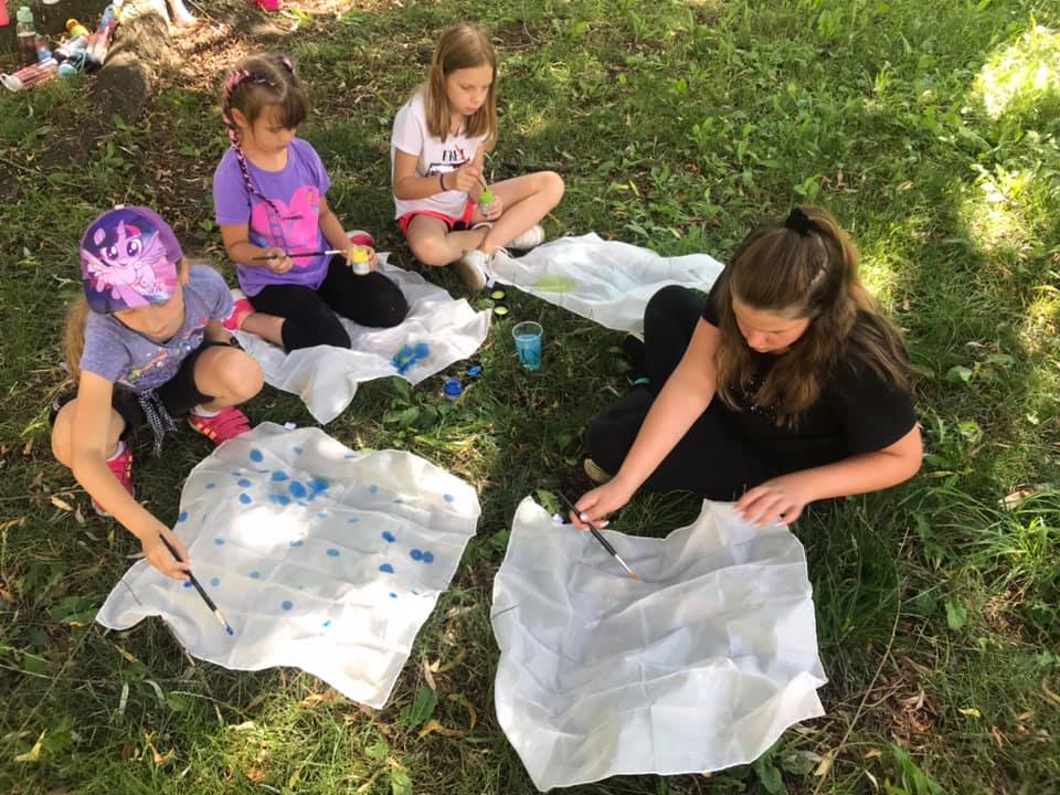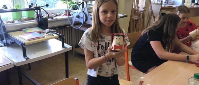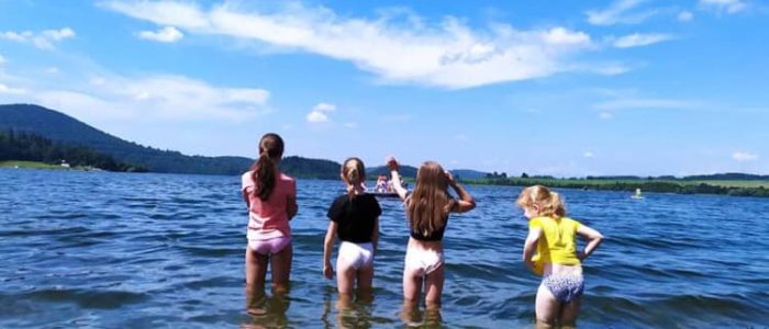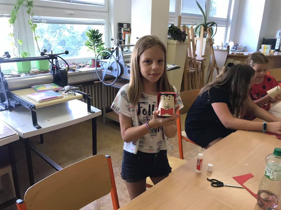 Celý týden jsme vyráběli netopýrky, mumie, strašidelné masky, čarokrásné hedvábné šátky, upírky a taky magické barevné obrazy. Kromě toho jsme zažili úžasné chvíle u vody na Slezské Hartě.