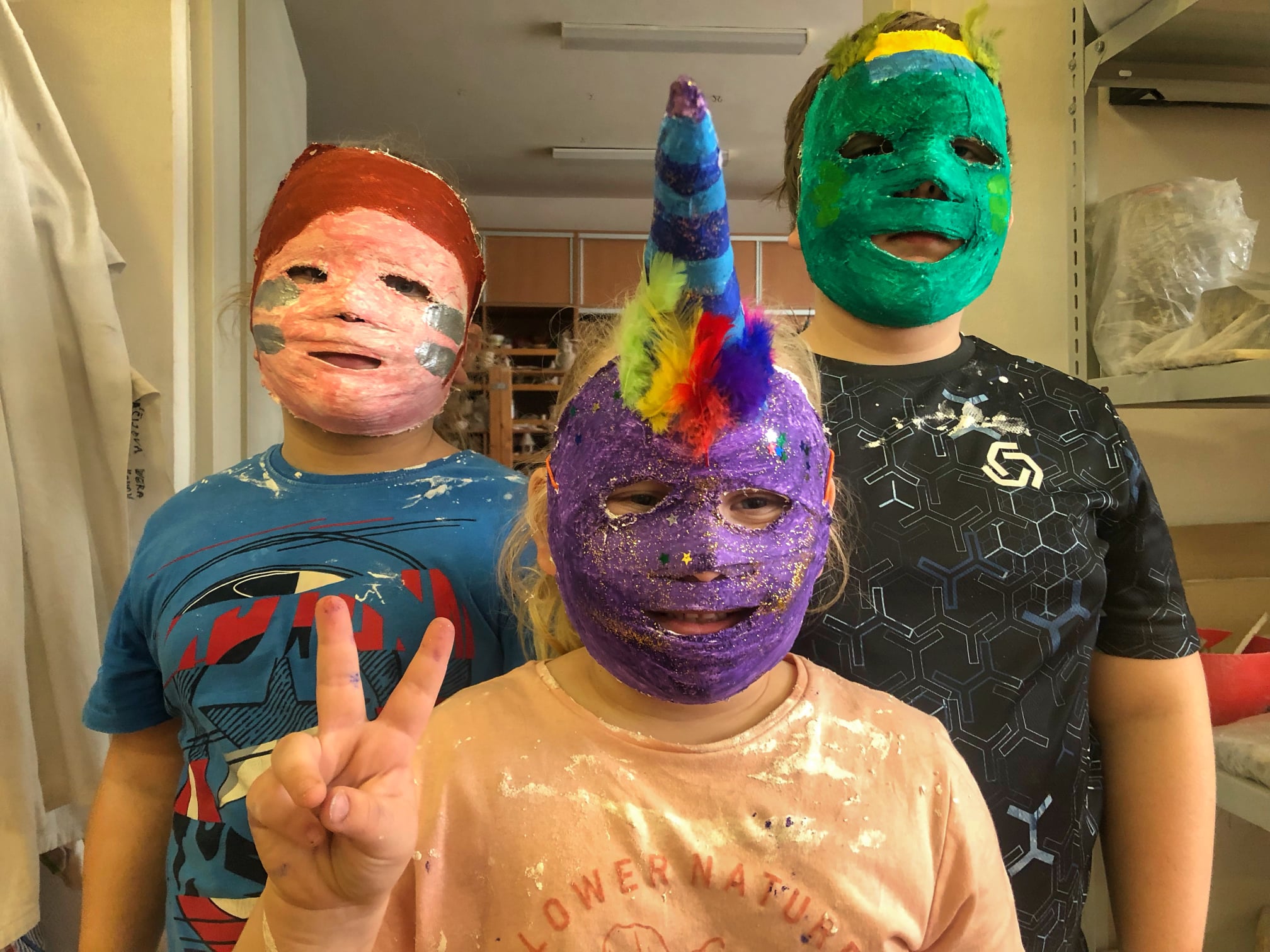 Sobotní dopoledne 26. 2. 2022 se neslo v duchu vyrábění karnevalových masek ze sádrových obvazů, a to přímo na obličeje zúčastněných tvořílků. Musíme říct, že fantazii se meze nekladli a masky se skutečně moc povedly.