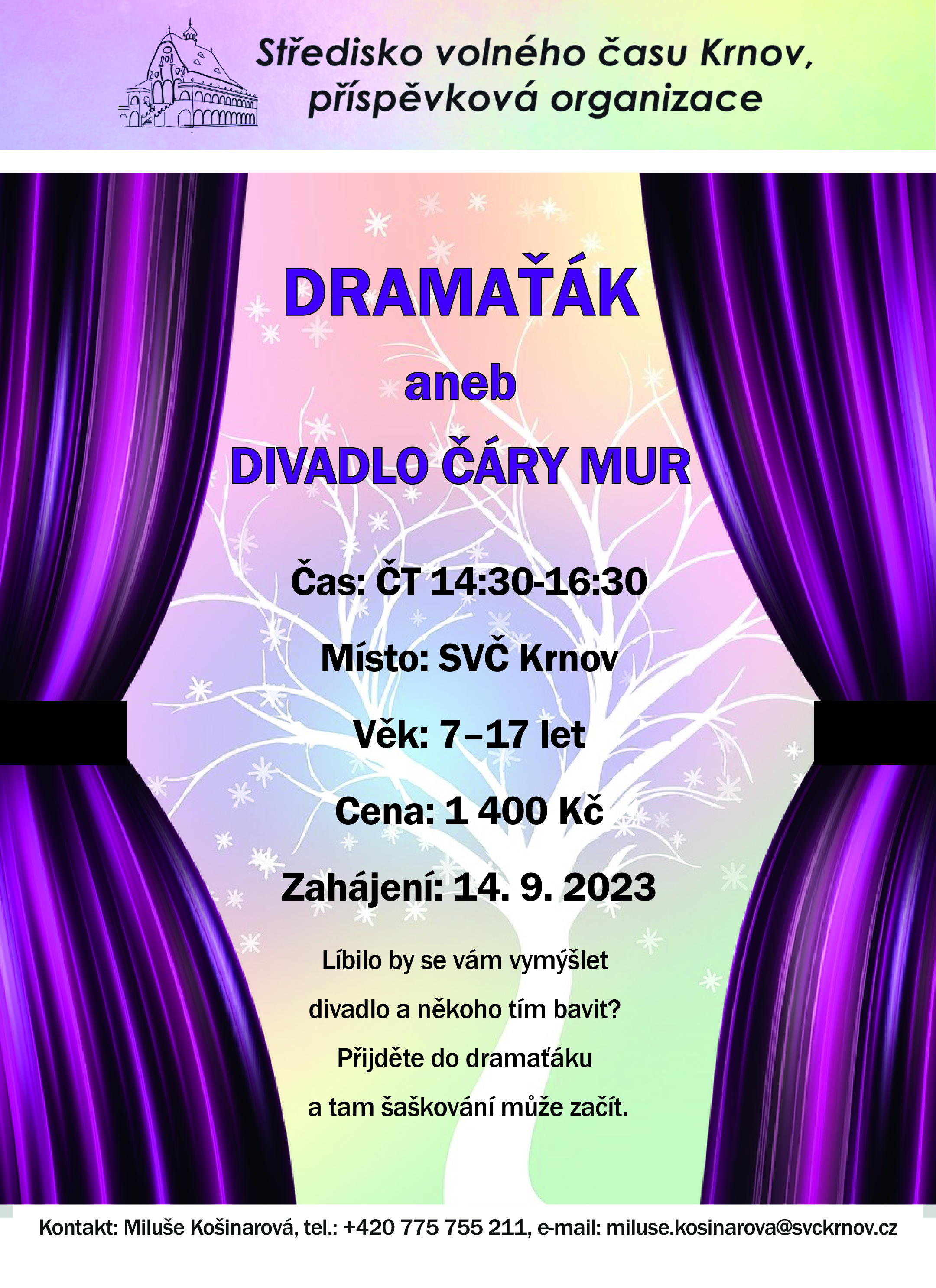 Kontakt: Miluše Košinarová, miluse.kosinarova@svckrnov.cz, 775 755 211