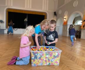 Děti si vyzkoušely slalom s košťaty, čarodějnickou rozcvičku a netradiční honičku, sbírání vršků do kotlíku i překážkovou dráhu.