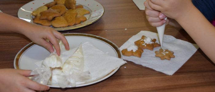 Vůně cukroví naplnila v uplynulých dnech i Středisko volného času Krnov, kde se konal kurz pečení vánočních makronek celkem ve třech termínech – 5., 6. a 11. 12. Do pečení se s Janou Adamovou pustilo nejen typicky ženské osazenstvo, ale i tatínci a děti. Kdo své bezchybné výtvory ihned nesnědl, mohl se jimi poté pochlubit doma. A samozřejmě také na fotografiích, které můžete vidět i vy 😉 A protože Vánocemi sezóna makronek nekončí, můžete se – pro jeho velký úspěch – těšit na další kurz věnovaný této delikatese i v novém roce. A nebojte se, nezůstane jen u ní, proto nezapomeňte sledovat naše webové nebo facebookové stránky.