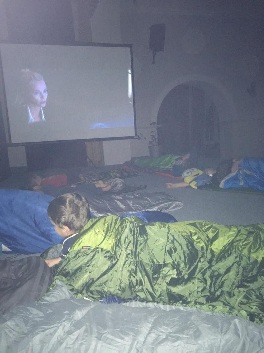 Děti z našich zájmových útvarů si zpestřily páteční večer o detektivní hry, které probíhaly venku na dopravním hřišti. Potom jsme si společně připravili a snědli výborné palačinky a vyrazili ještě na tajuplnou výpravu k cvilínskému kostelu. Pátrali jsme po viníkovi z jedné detektivky. Po návratu jsme si zalezli do spacáků a koukali na film, který jsme si promítli na plátno, takže to bylo skoro jako v kině…ale lepší, protože jsme u toho mohli ležet