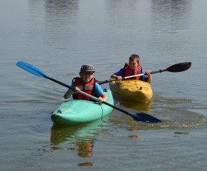 Zájmový útvar Netradiční sporty dne 7. 6. 2016 využil krásného počasí a vydal se k Petrovu rybníku v Krnově. Výuku jsme zahájili chůzí po slacklině a hned poté jsme nasedli do lodí. Děti si tak mohly zapádlovat v plavidle pro jednotlivce či si vyzkoušet spolupráci ve dvojici. Zkušení vodáci nám vysvětlili základní pravidla pro jízdu a plavili se spolu s námi po rybníce. Krásy vodního života jsme měli na dosah, kapříci skákali kolem lodí, divoké kachny s mladými jsme pozorovali z dáli a naopak my jsme byli středem pozornosti nedaleko plujících labutí. Poté následovala ukázka zkušenějších na nedaleké divoké řece, nechyběl ani populární eskymák.