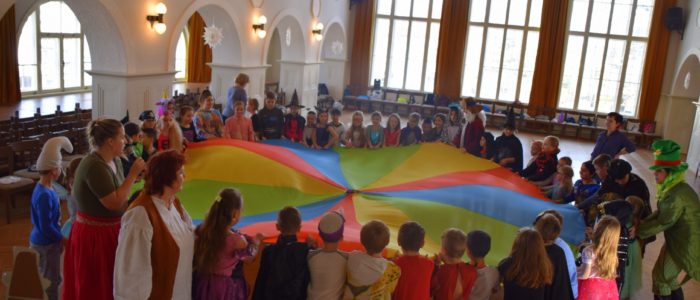 Nechyběly pohybové hrátky s hobíky, tvořivé chvilky, při kterých jsme si nazdobili vějířky a kufříky na cesty – připravené na další dobrodružství!