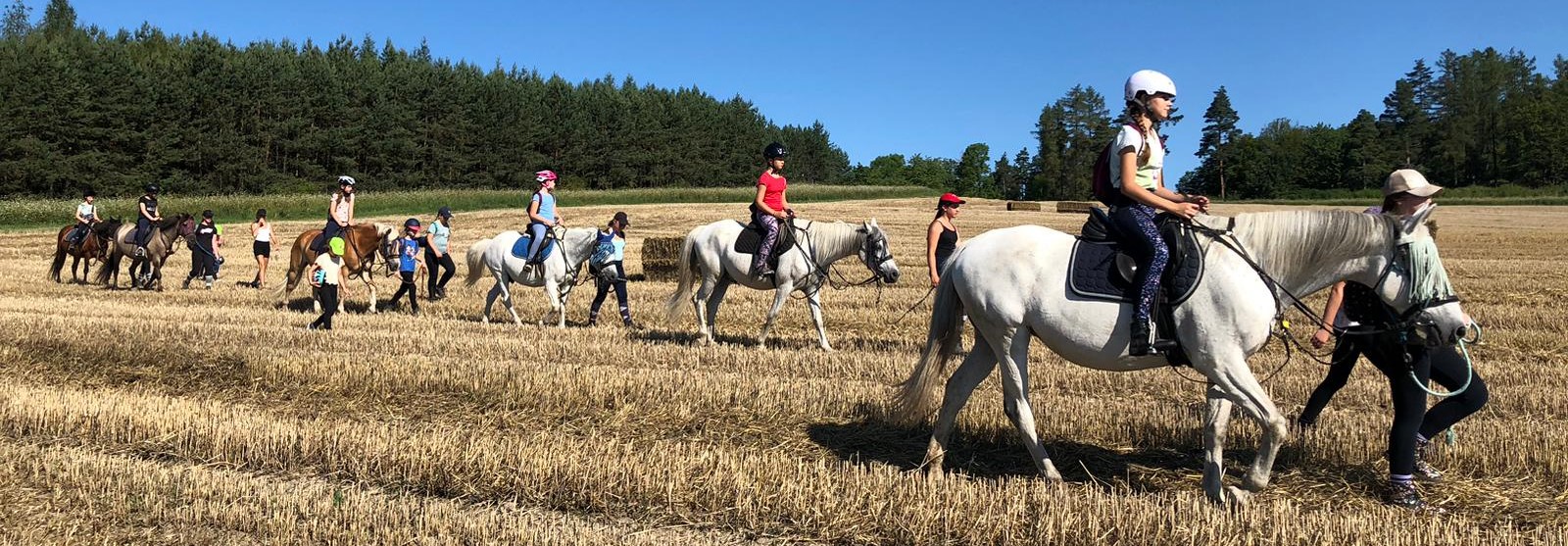 Naučily se základy zacházení s koňmi. Učily se správně vodit, vyčistit je i nastrojit, ale samozřejmě i jezdit. Letos si všechny přály hlavně vyjížďky na koních do přírody, tak jsme jim jejich přání splnili.